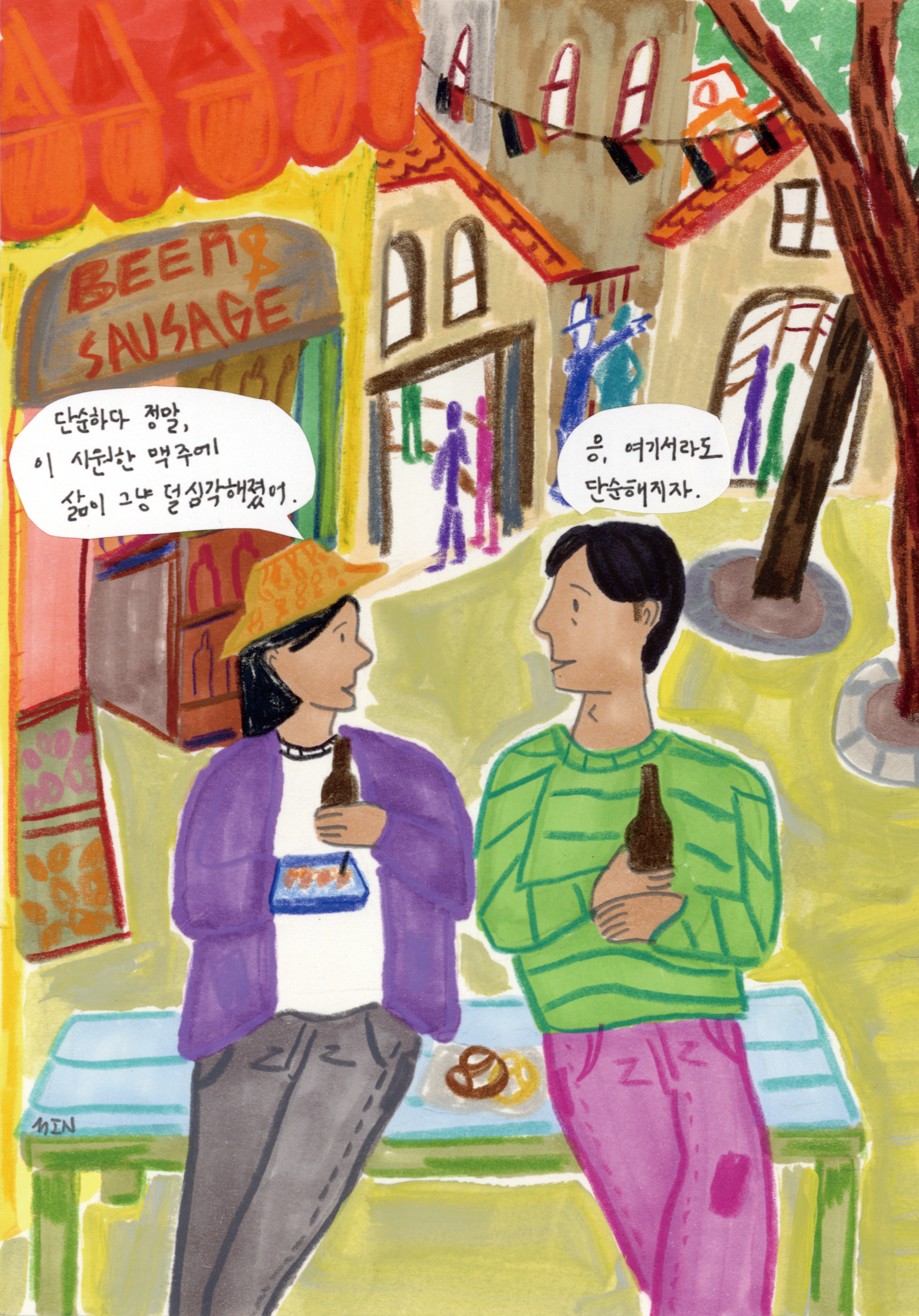 남해, 그리고 독일마을. 일상과 동떨어진 듯한 기분이 드는 작은 마을. 이국적인 풍경과 바다, 여행의 설렘을 품고 찾아오는 사람들, 그 사이 조용한 여유를 누리는 마을 주민들. 어딘가 영감을 자극하기에 충분합니다.