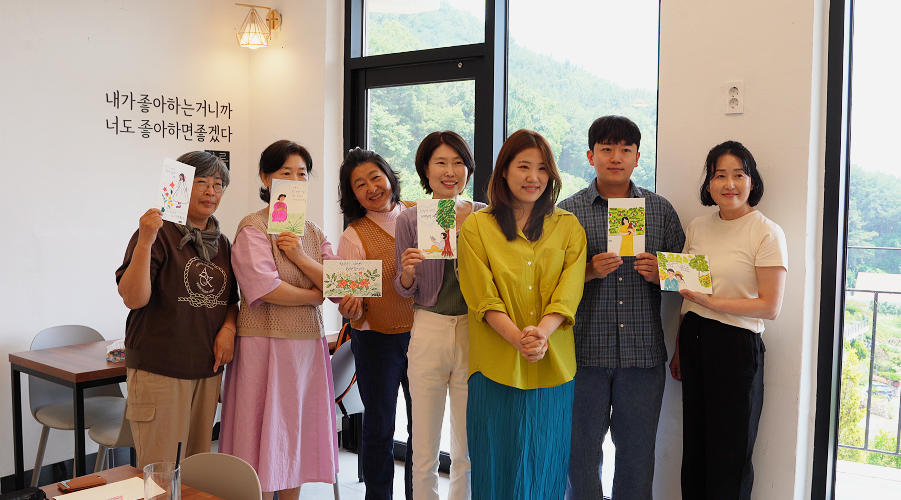 작가의 감성을 남해의 이웃들과 나누는 시간도 있었습니다. 마음을 담은 한 문장을 필사하고, 일상의 장면을 직접 그려보는 원데이 클래스. 낯선 이들이 모였지만 자연스럽게 속 이야기를 털어놓게 되는, 차분하고 따뜻한 분위기의 시간. 민경희 작가 특유의 다정한 기운이 만든 공간이었습니다.