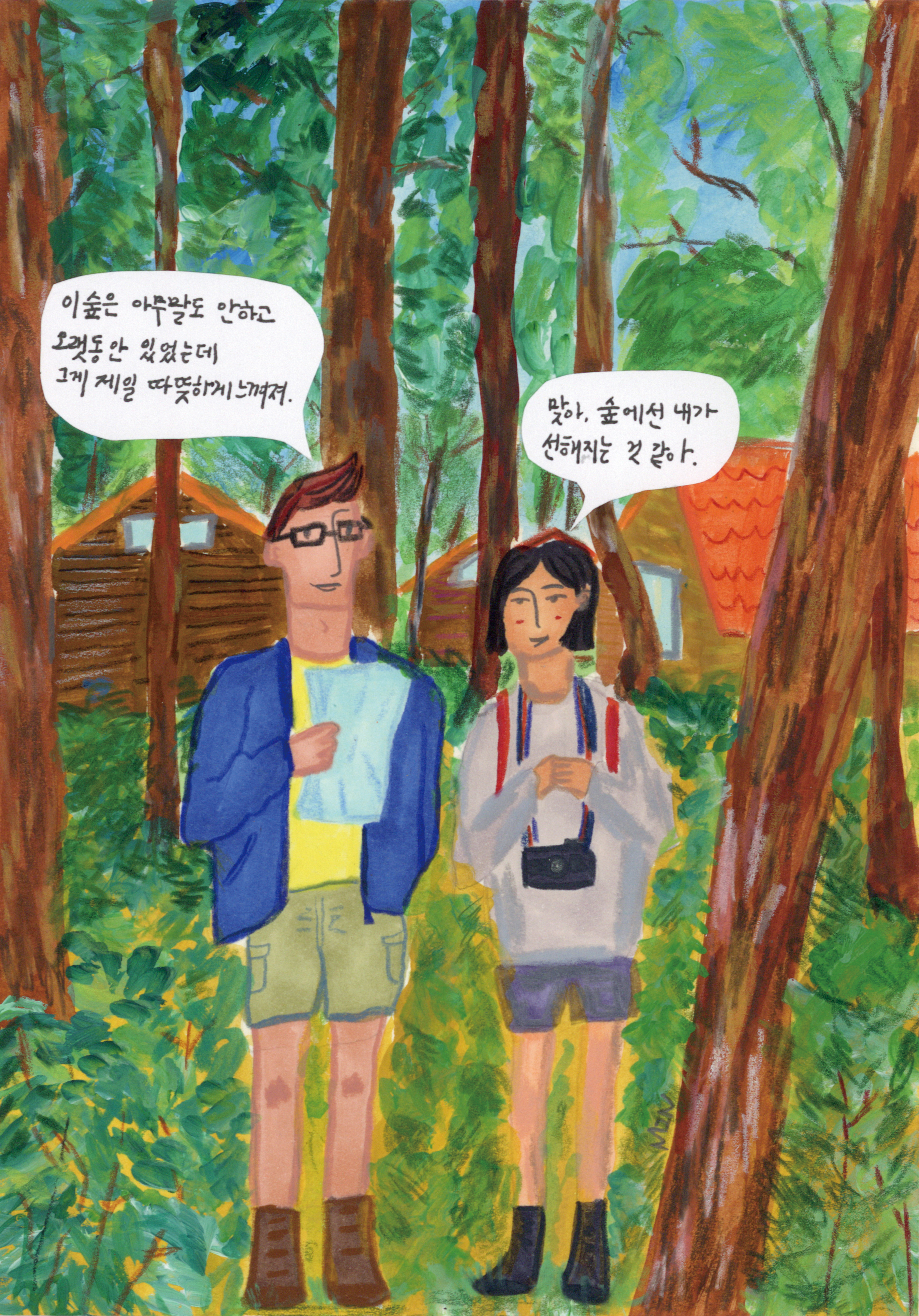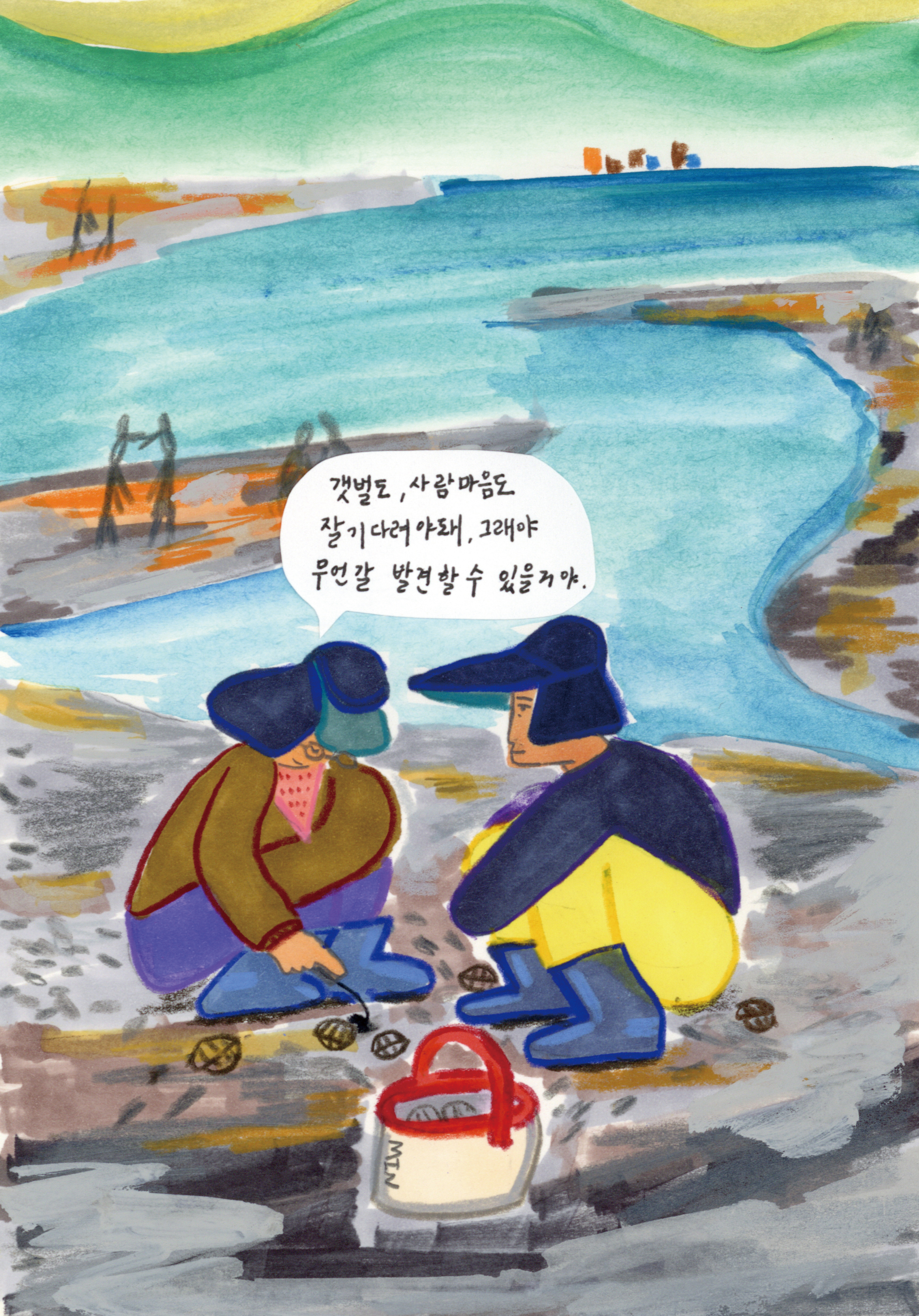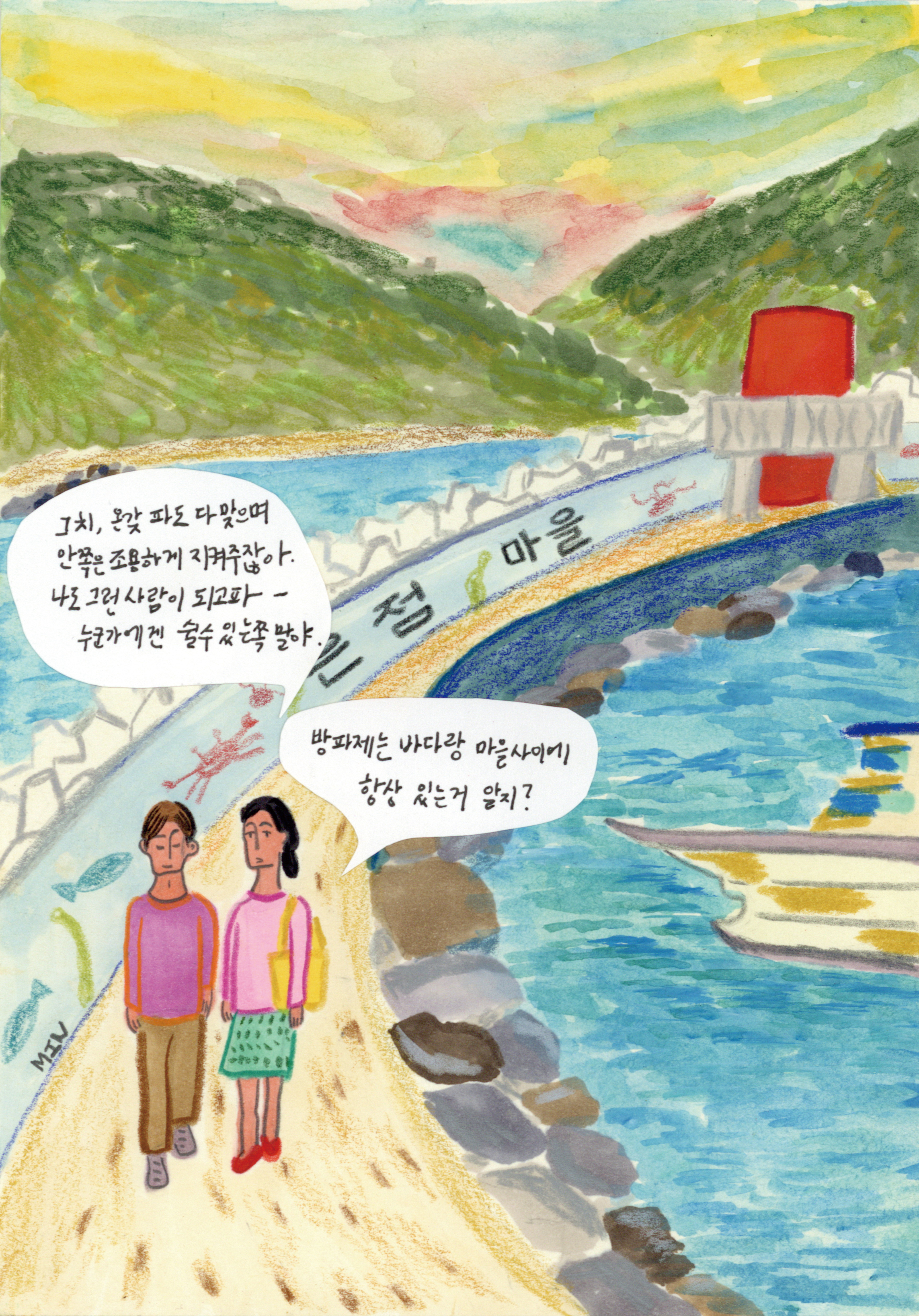 그녀가 기억한 남해의 풍경은 무엇이었을까요. 그림으로 남긴 다섯 장면, 그리고 장면마다 스며든 한 줄의 마음을 이곳에 살며시 펼쳐봅니다.